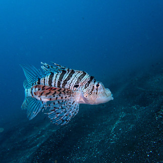 During a recent dive at Akazawa Beach in Shizuoka, Japan, I had the chance to observe a Pterois lunulata, or lunar lionfish, up close. The water was a comfortable 24°C, providing clear visibility and ideal conditions for observing marine life.